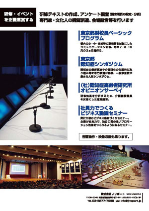 ………………………………………………………………………………………………………………………………… 【研修・イベント・マスコミリリース】 東京都教育庁「副校長ベーシックプログラム」の運営・テキスト制作・講師 東京都「認知症シンポジウム」運営 | ||